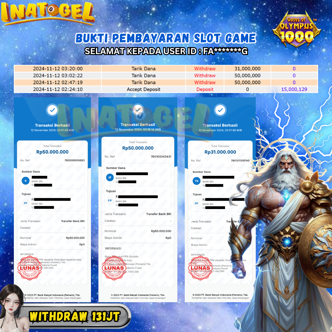 Inatogel Jackpot Slot Game Gates Of Olympus 1000 Rp131,000,000