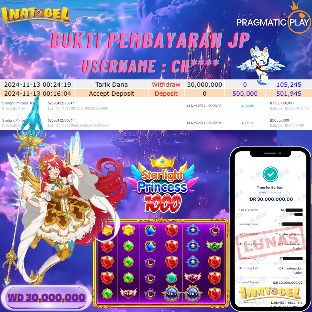 Inatogel Jackpot Slot Game Starlight Princess 1000 Rp30,000,000