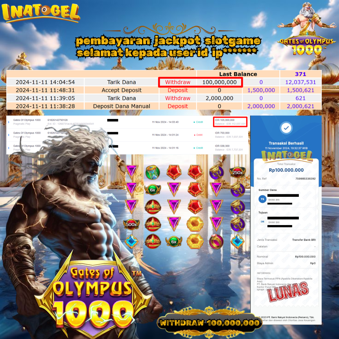Inatogel Jackpot Slot Game Gates Of Olympus 1000 Rp30,000,000