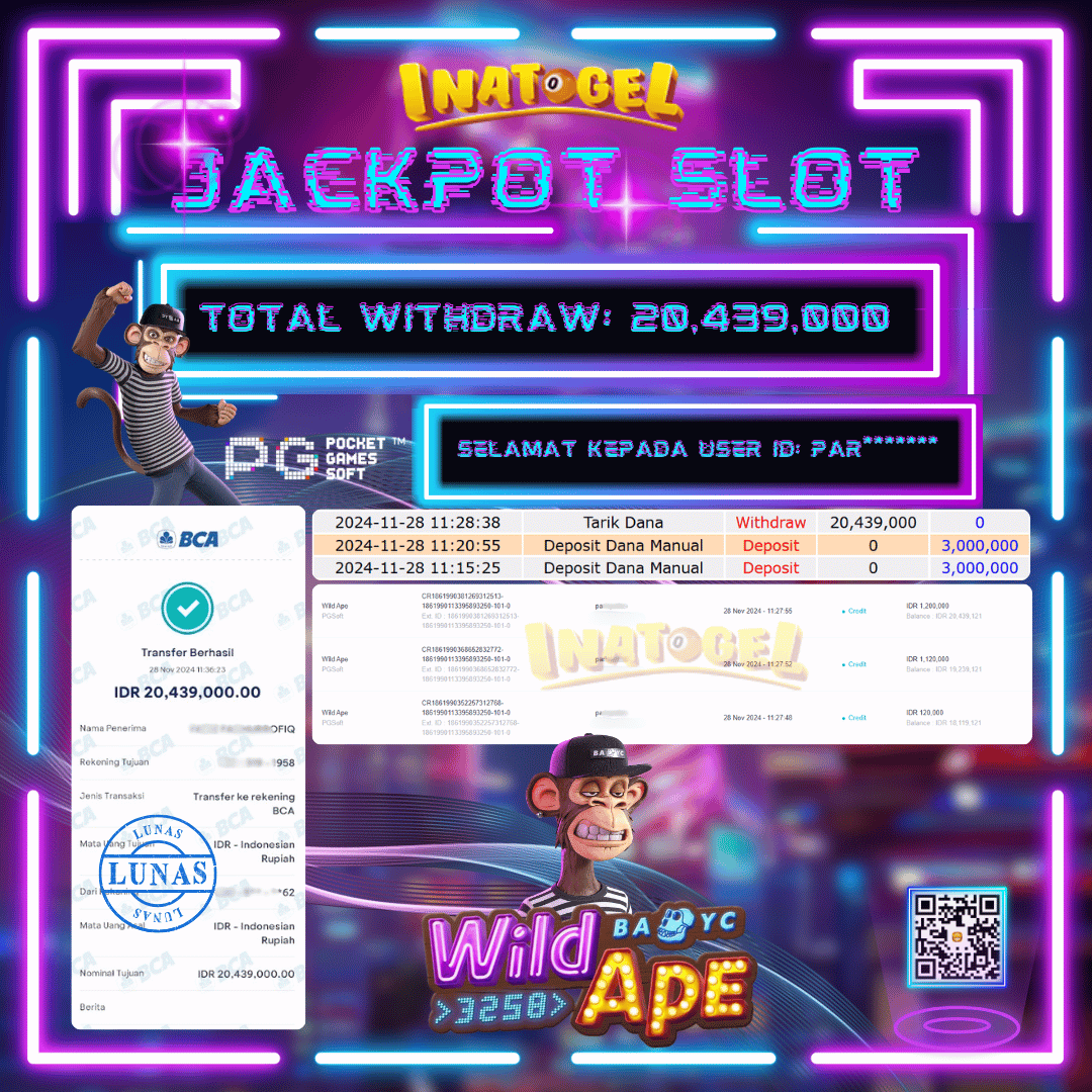 Inatogel Jackpot Slot Game Wild Ape Rp20,439,000