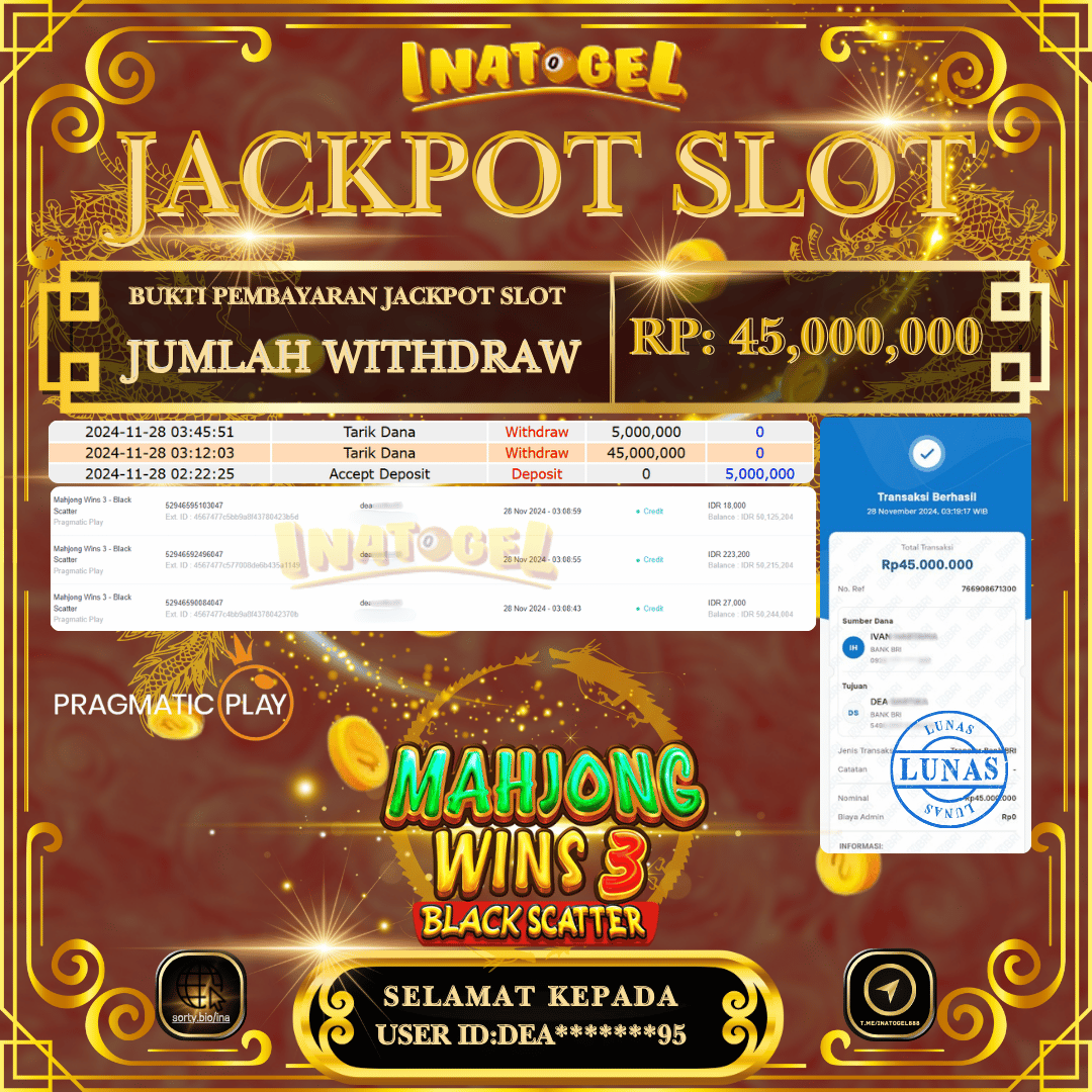 Inatogel Jackpot Slot Game Mahjong Wins 3 Black Scater Rp45,000,000