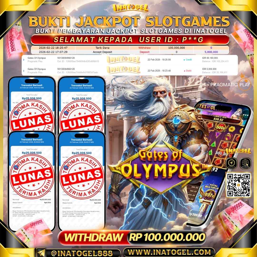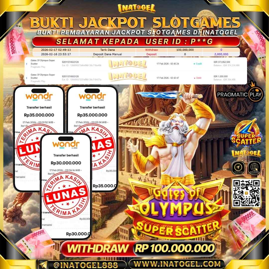 Inatogel Jackpot Slot Games Gates Of Olympus Rp 100,000,000