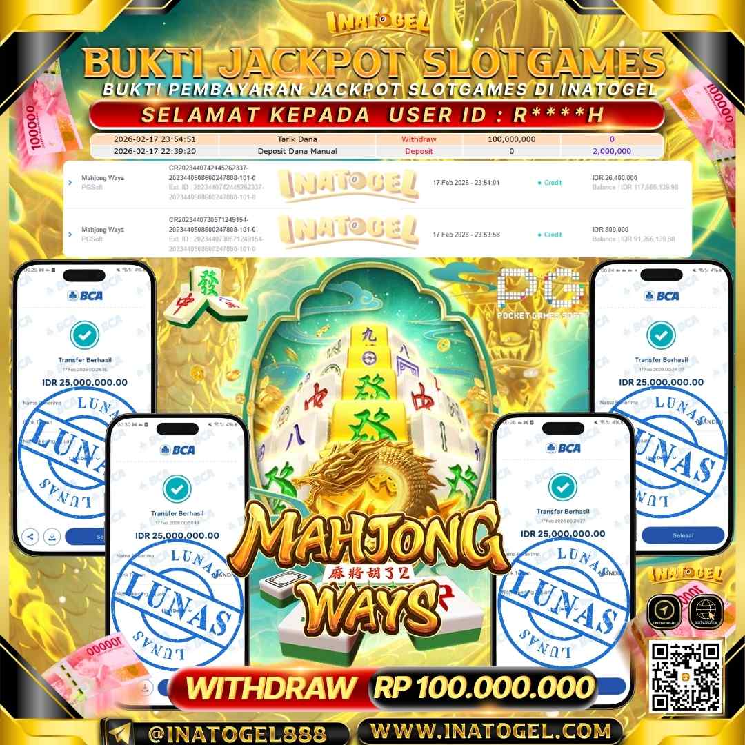 Inatogel Jackpot Slot Games Mahjong Ways Rp 100,000,000