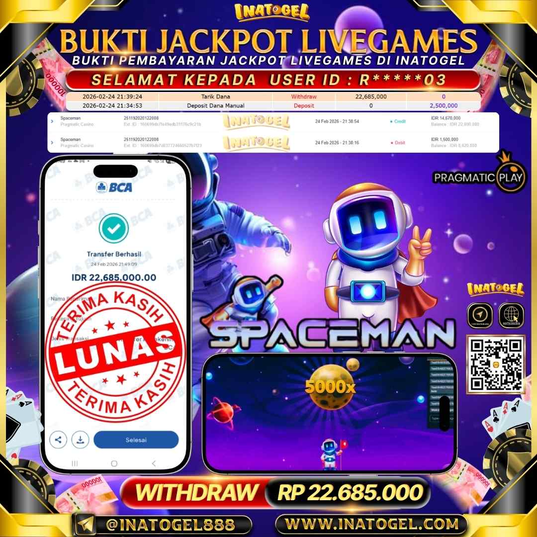 Inatogel Jackpot Live Game Spaceman Rp 22,685,000