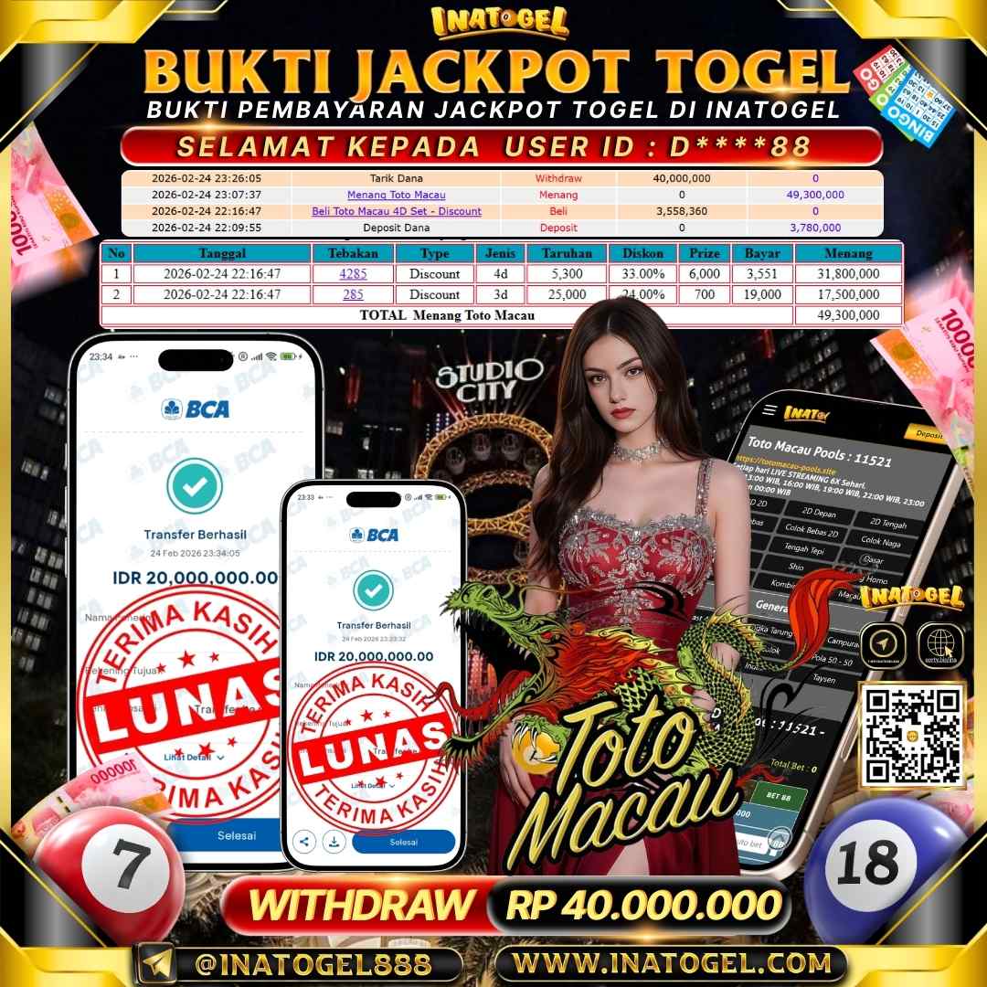 Inatogel Jackpot Togel Toto Macau Rp 40,000,000