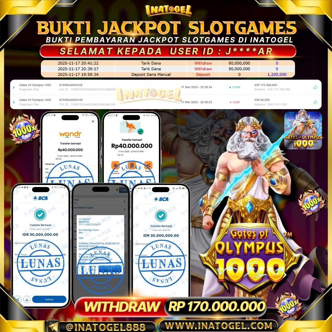 Inatogel Jackpot SlotGame Gates Of Olympus 1000 Rp170,000,000