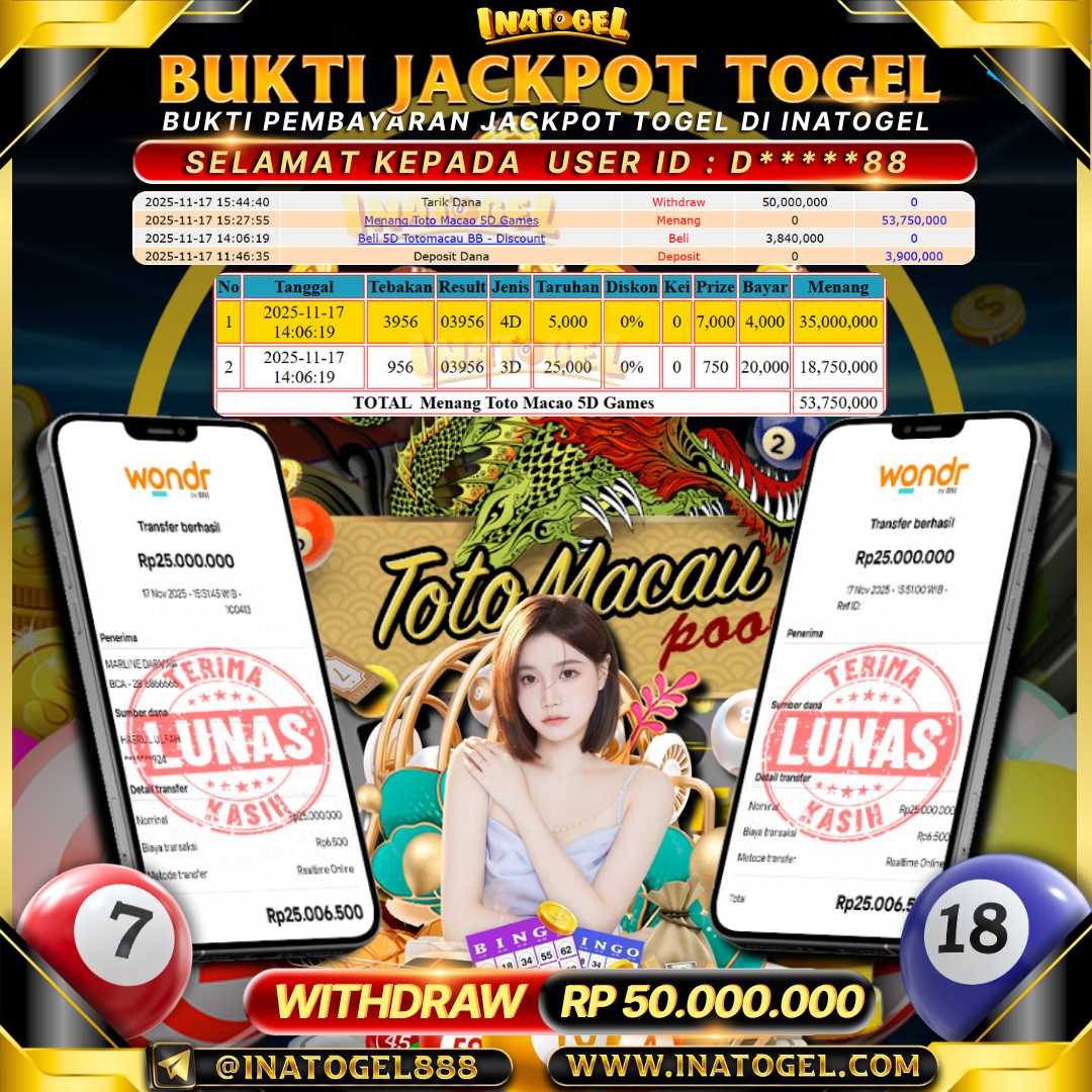 Inatogel Jackpot Togel Toto macau Rp55,000,000