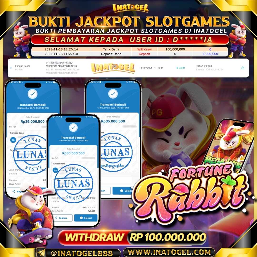 Inatogel Jackpot SlotGame Fortune Rabbit Rp100,000,000