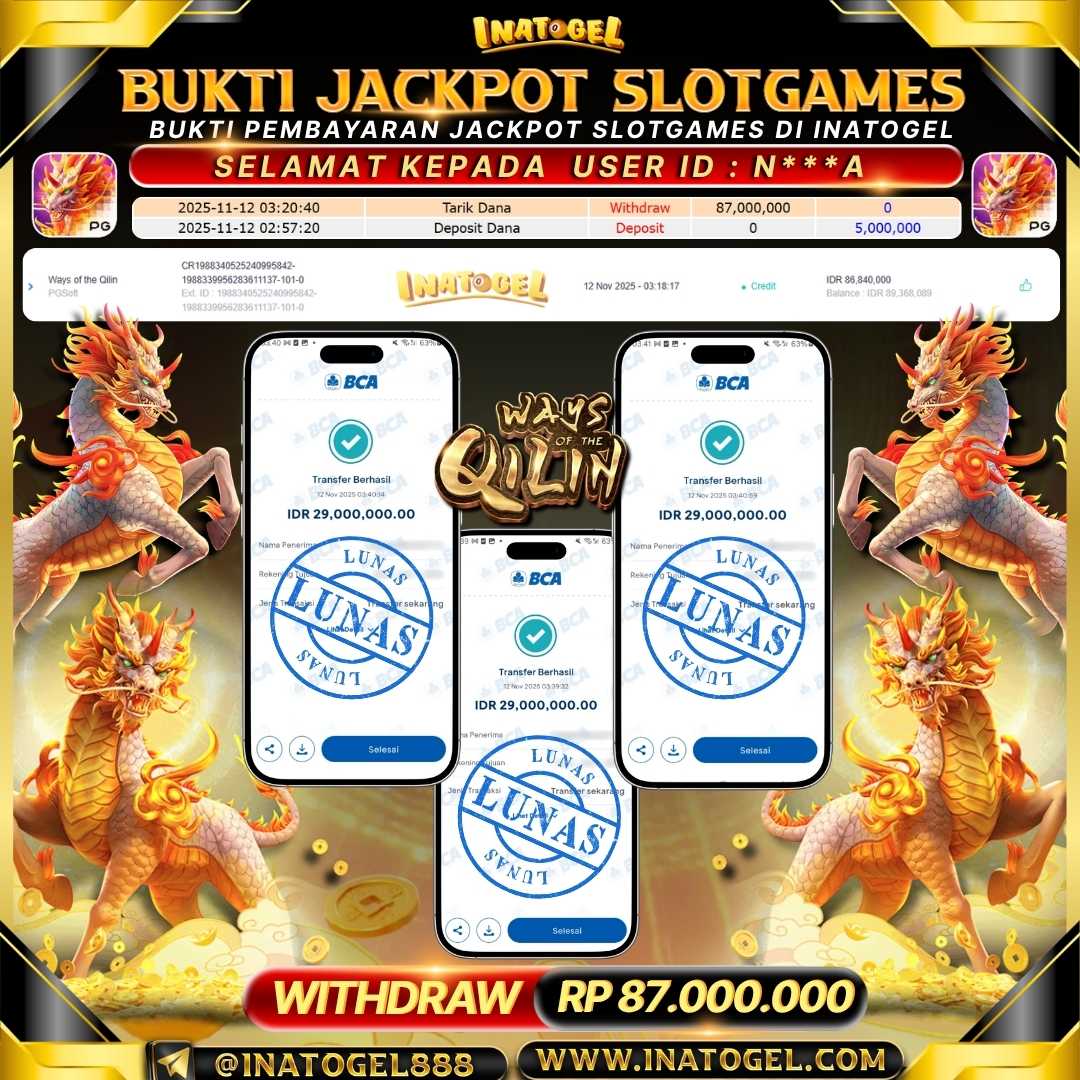 Inatogel Jackpot SlotGame Ways of the Qilin Rp87,000,000