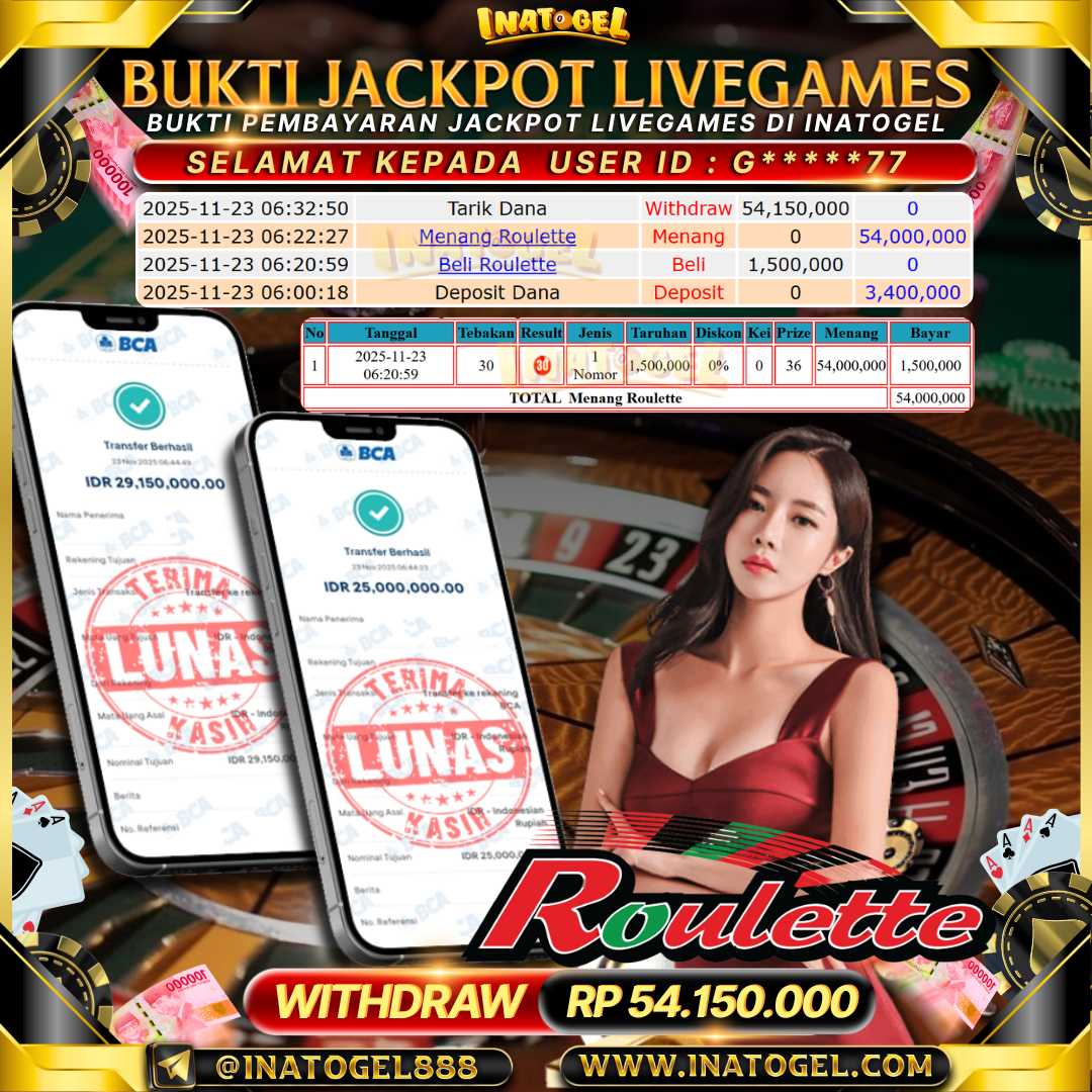 Inatogel Jackpot Live Games Roulet Rp54,150,000