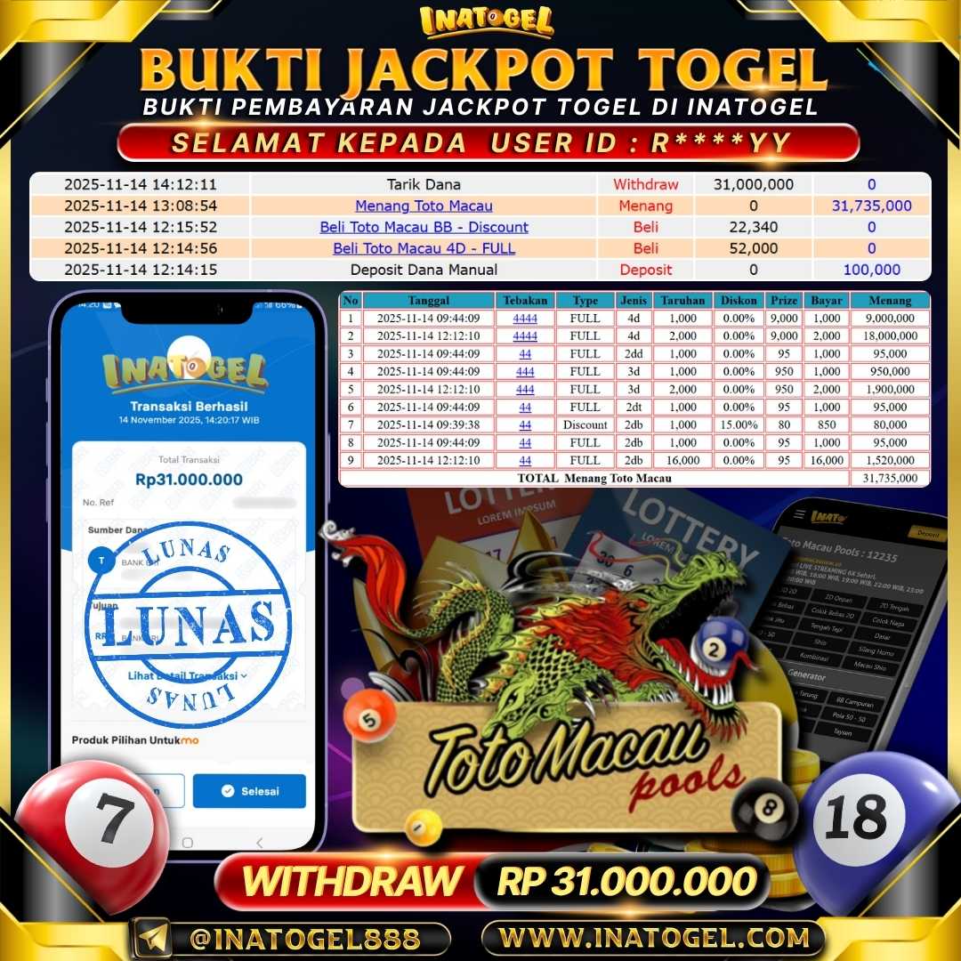 Inatogel Jackpot Togel Toto Macau Rp31,000,000