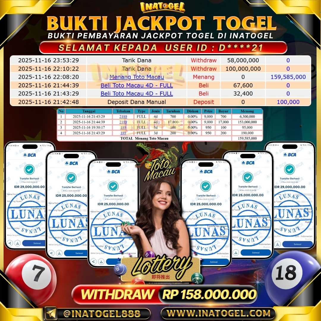 Inatogel Jackpot Togel Toto macau Rp158,000,000