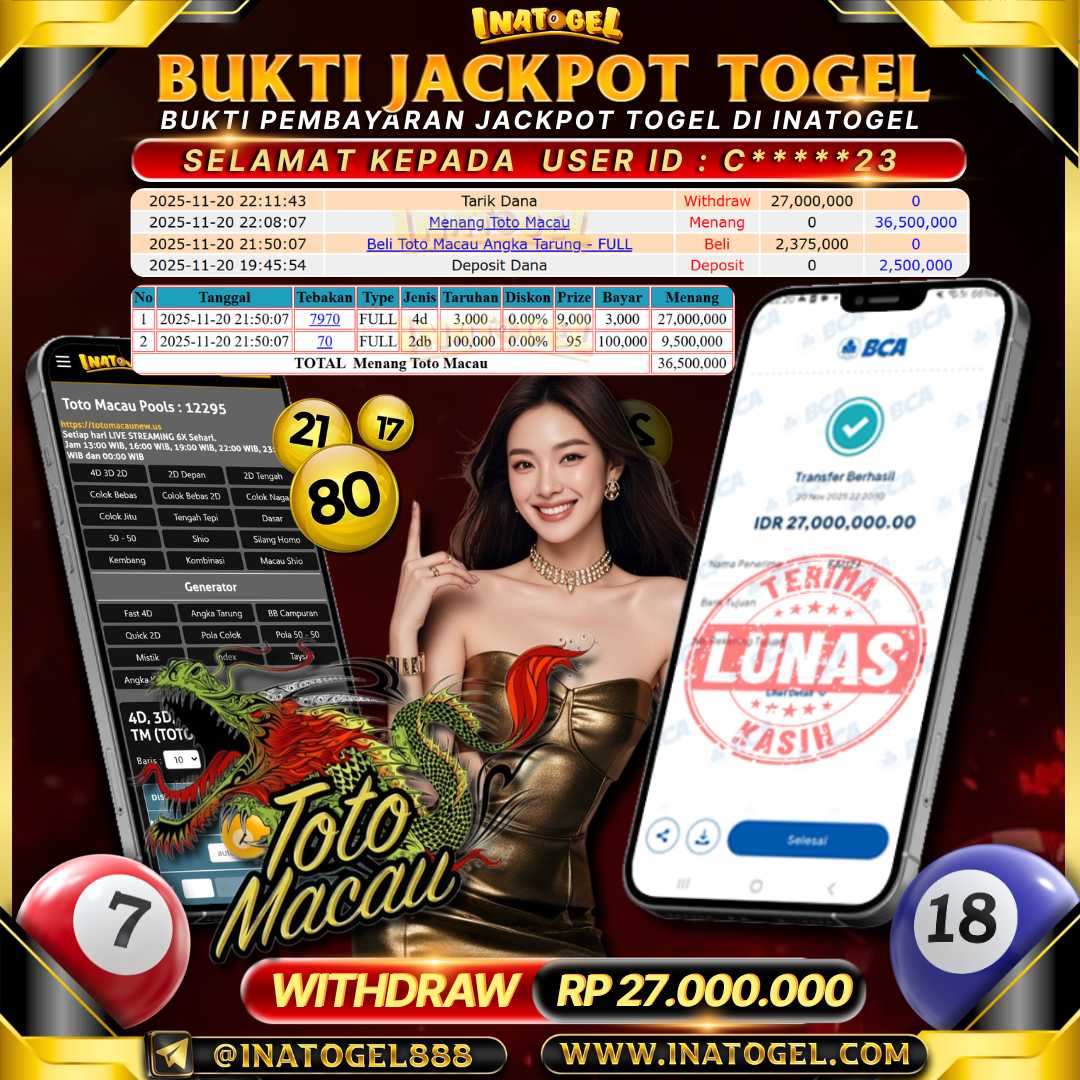 Inatogel Jackpot Togel Toto macau Rp27,000,000